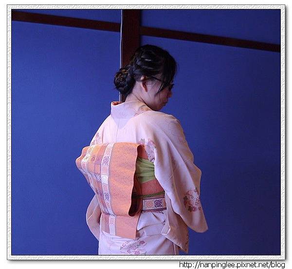 以下是後來在東茶屋街午餐時,我們趁機拍下的背影照,可以看出和服和腰帶的搭配。