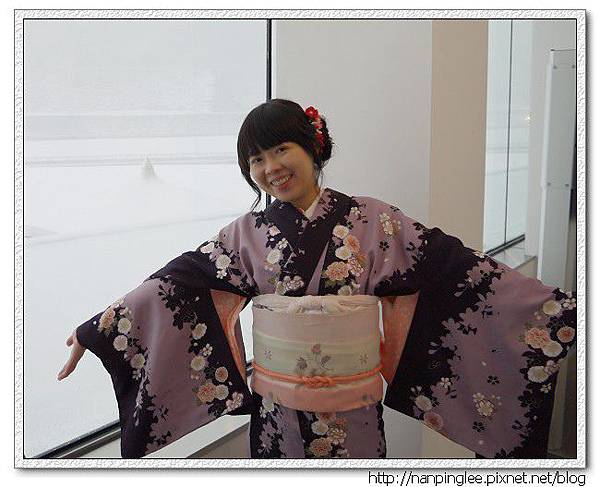 這張則是和服的正面照(窗外的雪大到幾乎看不見對面的金澤城)