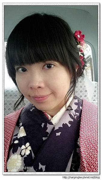 頭髮的部分,原本我以為會使用到假髮,沒想到美髮師完全用我並不長的頭髮(大概到肩膀的長度)來做造型,弄出了一個看起來挺複雜的樣式,小瑾一直喊著好看好看,上面的背影照可以稍微看出一些端倪。再裝上可愛的小花髮飾,實在非常滿意~~~