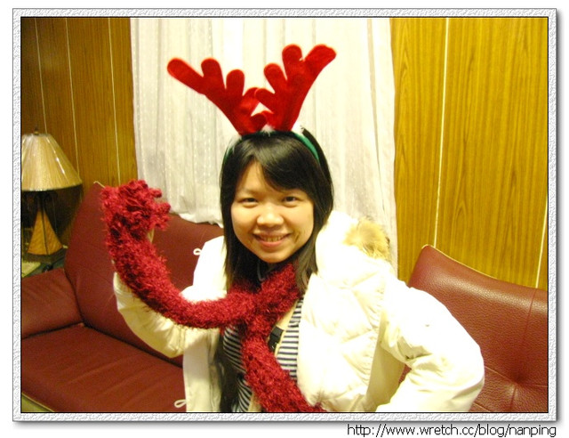 已經先拿麋鹿角髮圈、聖誕帽等玩了一輪了~