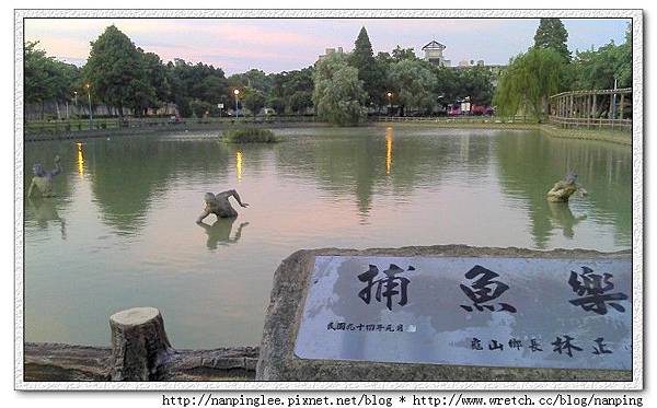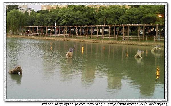 才剛看湖邊標示了:禁止戲水、禁止垂釣,