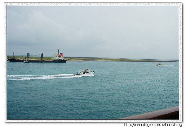 我們一邊排隊,一邊欣賞看起來就很清澈的海水,還有疾駛而過的船艇