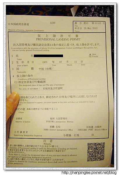 船停在石垣島後,所有人如果打算下船,都需要去辦理日本的上陸許可(日本海關會派人到郵輪上)