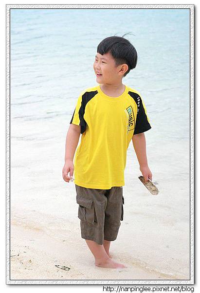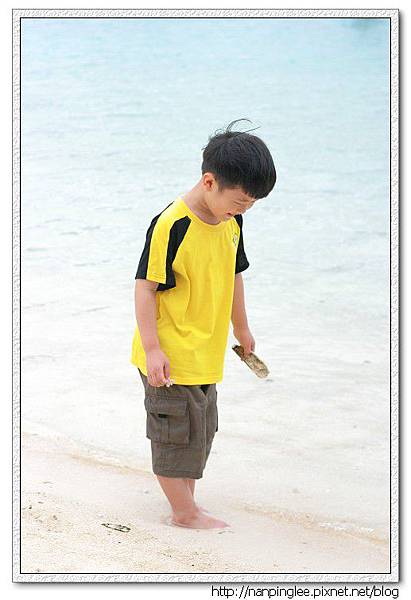 小瑾以前只敢在沙灘上玩,現在居然敢自己脫鞋子踩水(可能因為浪不大吧,而且水實在太乾淨了)