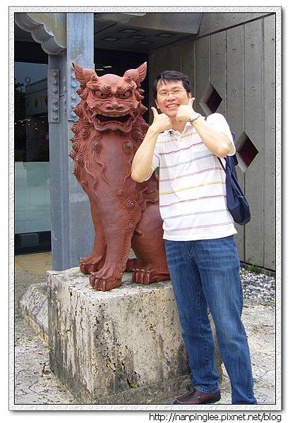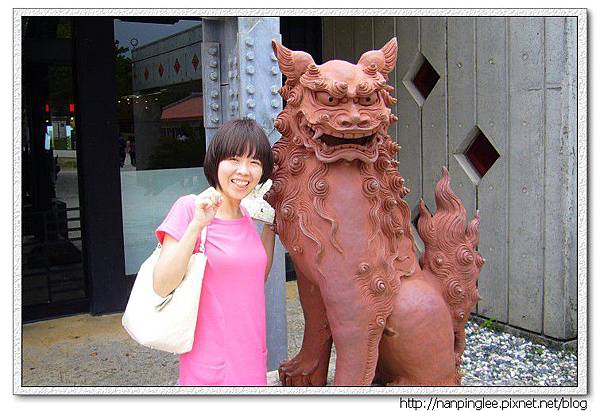 姐姐帶小瑾去逛時,我和老公趁機和館前的風獅爺合照,