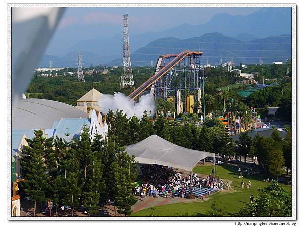 其中有個從12樓高俯衝下來的遊樂設施--轟浪--我們當然不敢玩,