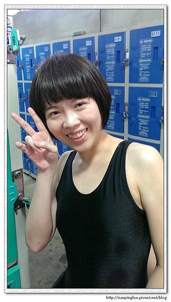 其他人的泳衣都好鮮艷喔,或是有設計感,哈~